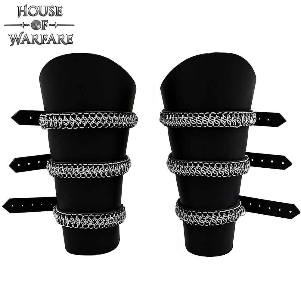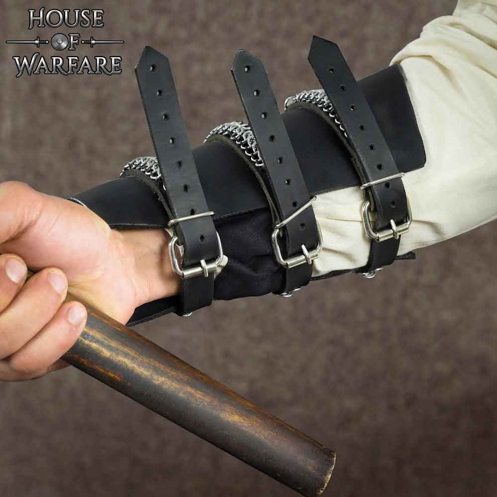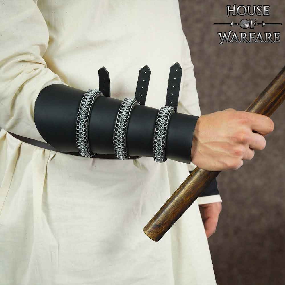 Brazales de cuero Guardabosques con hileras de cota de malla – Negro