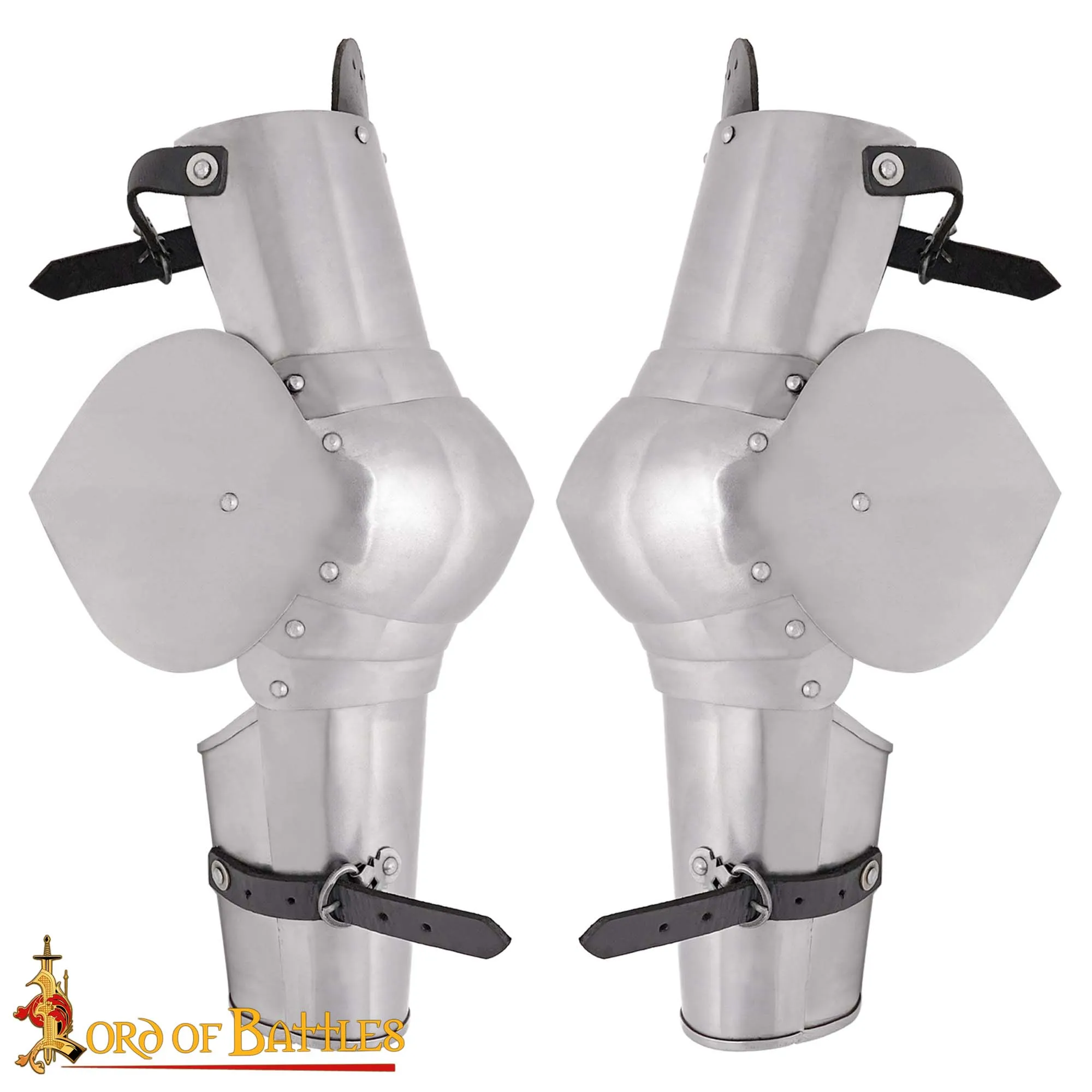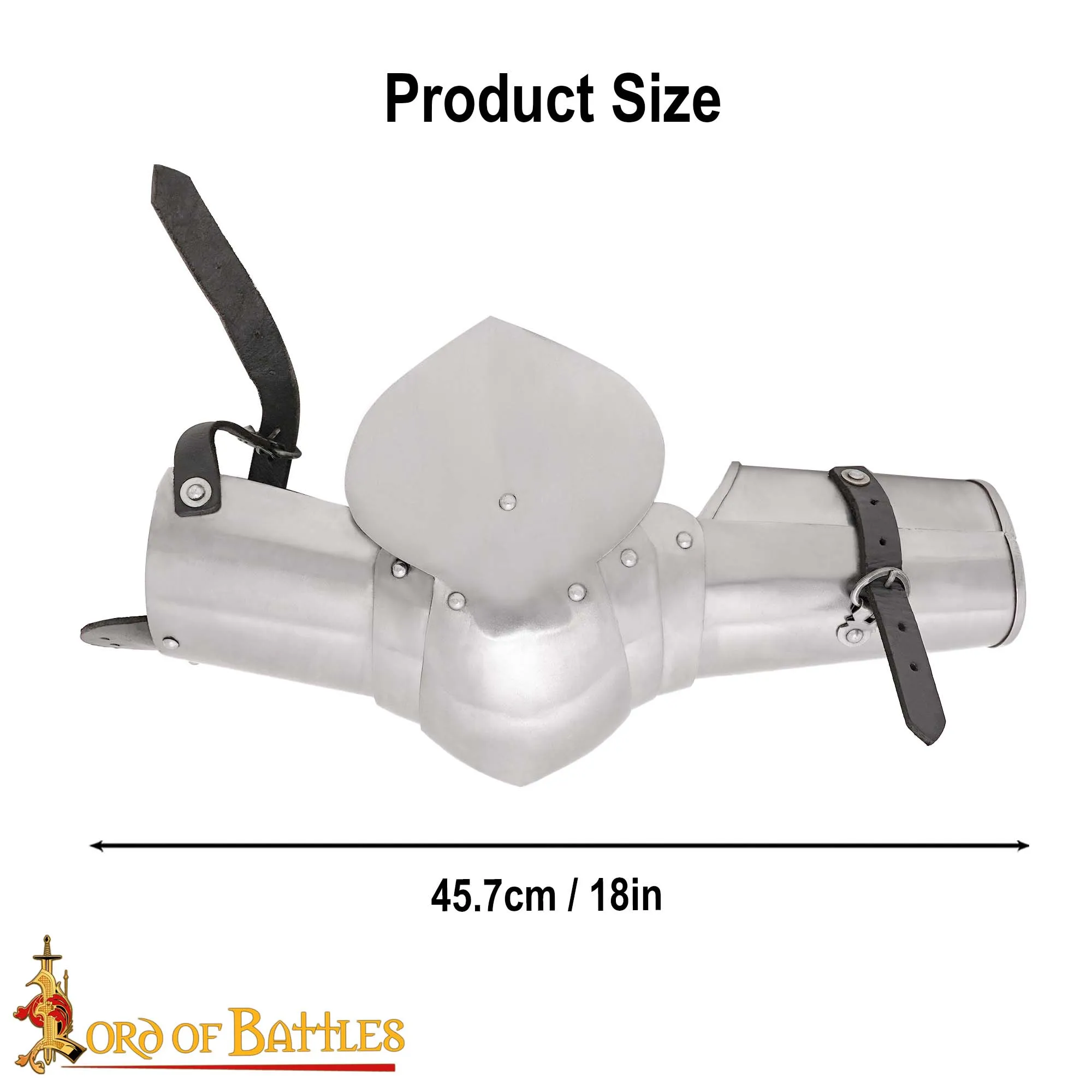 DescripciónHISTORIALos brazos y las manos eran las herramientas más importantes de un caballero. Su fuerza y ??resistencia eran necesarias cuando las armas pesadas debían transportarse durante horas en la batalla o en un torneo. Al mismo tiempo, los brazos podrían sufrir daños en combate ya que un golpe que no alcanza su objetivo a menudo golpeaba los brazos. E incluso uno podía autolesionarse involuntariamente, por ello tener los brazos desprotegidos posibilitaba sufrir lesiones graves y dejar al caballero incapacitado e indefenso.Hasta principios de la Edad Media, la protección de los brazos recibió poca atención. Los primeros modelos consistían en partes metálicas individuales que estaban unidas a correas atadas alrededor del antebrazo. Hacía finales de la Edad Media las protecciones utilizan más piezas elementos que se extienden desde la muñeca, sobre el codo, hasta aproximadamente la mitad de la parte superior del brazo. Visualmente y en su efecto protector, tales brazales completos forman una unidad en conjunción con los hombros, incluso con guantes de malla o guanteletes completos.Para su personaje de LARP o participar en una recreación medieval los brazales suponen una pieza ideal con la que complementar su vestuario y armadura.Los productos de metal requieren de unos cuidados para su correcto mantenimiento. La norma más importante es evitar todo lo posible la humedad (agua, sudor, salinidad, etc.). Almacenarla en un lugar seco y revisarlo cada varias semanas para detectar signos de oxidación. Si encuentra alguno, retíralo frotando el lugar afectado con un estropajo impregnado con aceite antioxidante.Si la pieza se moja, es importante que la seque completamente tan pronto como sea posible.Después de manipular, usar o tras de varios meses de almacenamiento o exhibición, todo el metal debe limpiarse con un paño limpio. Recomendamos lubricar ligeramente la superficie limpia conSpray Ballistol(aceite lubricante y antioxidante).Siguiendo estos consejos, cada vez que asistas a un Rol en Vivo (LARP) tu armadura lucirá limpia y resplandeciente.