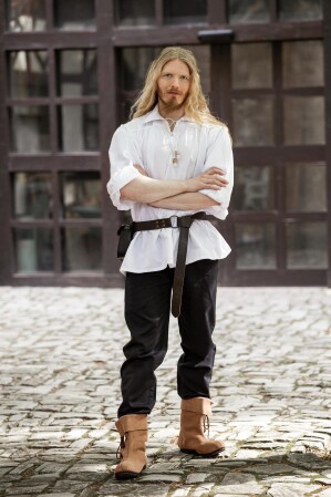 Camisa pirata con cordones «Artur» con cuello Blanco