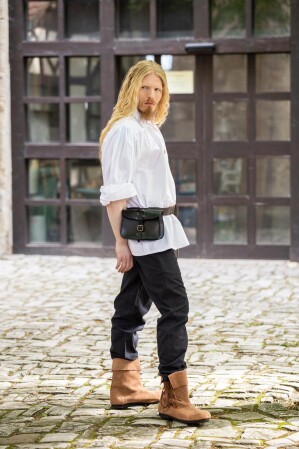 Nuestra camisa se inspira en la rica tradición de las vestimentas medievales, donde los detalles prácticos se combinaban con elementos decorativos distintivos. Durante estas épocas, las camisas sueltas y cómodas eran esenciales para la vida diaria, permitiendo a los hombres realizar sus tareas sin restricciones. Este diseño refleja ese legado, trayendo una pieza que podría haber sido usada por aventureros intrépidos de tiempos lejanos.