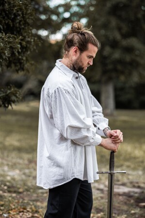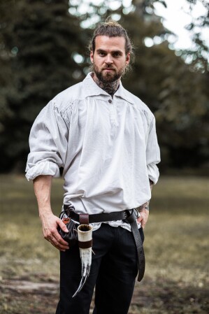 No esperes más para añadir este elemento esencial a tu colección. Consigue ahora nuestra camisa pirata con cuello James natural y completa tu look con accesorios auténticos. Explora nuestras categorías complementarias como cinturones medievales & vikingos o añade un toque distintivo con una gugel medieval. Embárcate en nuevas aventuras con estilo incomparable.