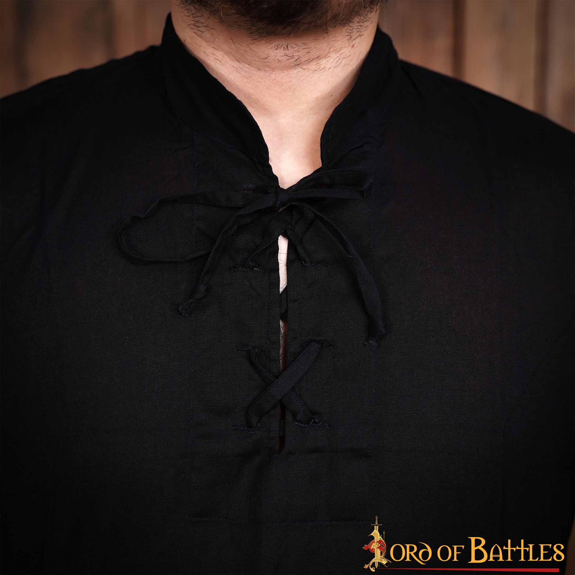 Esta túnica interior pirata de algodón puede usarse como prenda independiente para un disfraz sencillo o como base para un atuendo más elaborado. Gracias a su confección artesanal y a su tejido transpirable, resulta cómoda incluso en jornadas largas.
