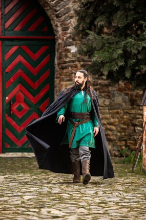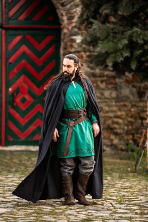 La capa es uno de los elementos más emblemáticos del vestuario medieval. Durante la Edad Media, las capas como la Gunnar eran esenciales para protegerse del frío mientras añadían un toque distinguido al atuendo diario. Inspirada en estos diseños históricos, nuestra capa no solo te ofrecerá calidez sino también te transportará a tiempos donde la valentía y el honor eran moneda común.