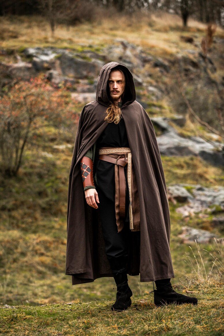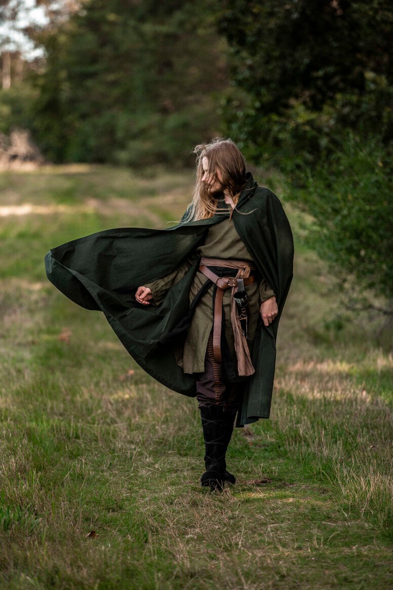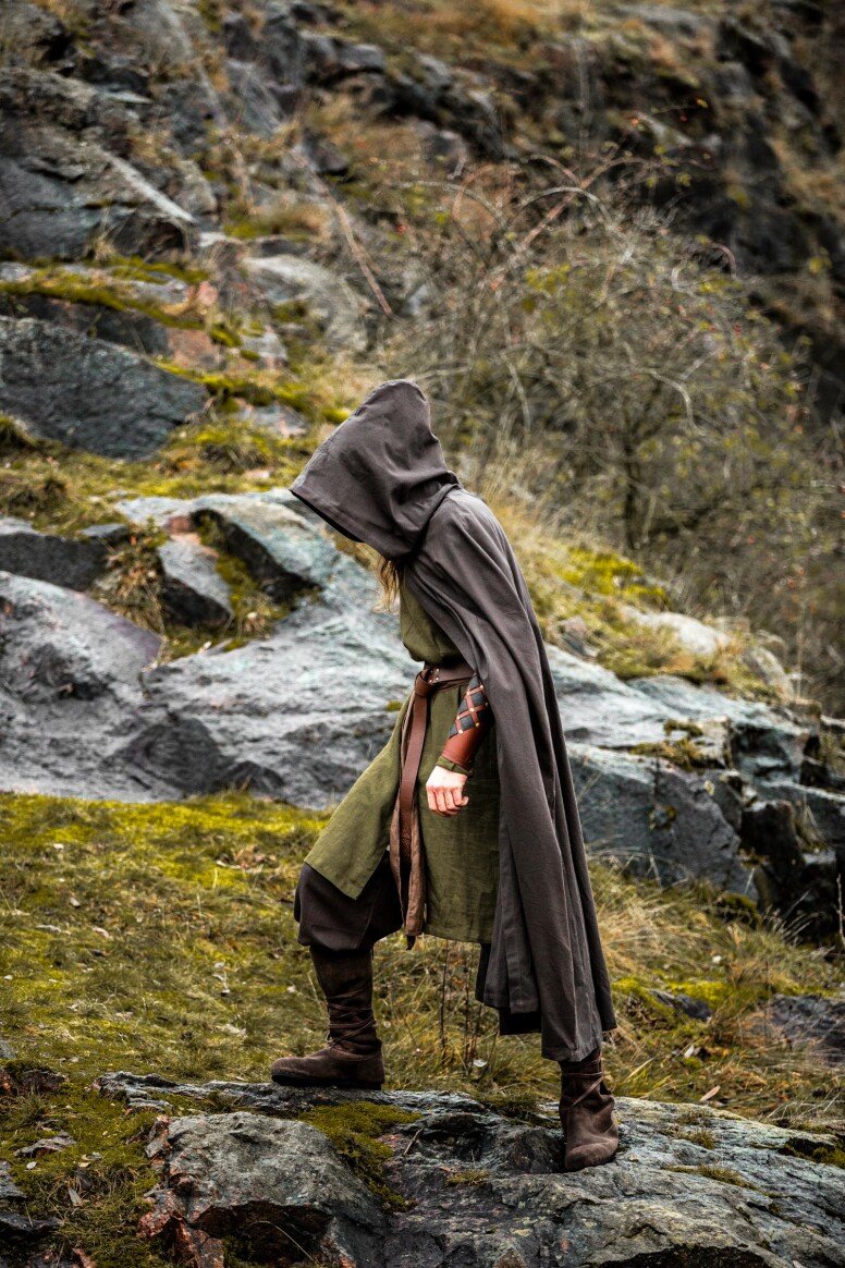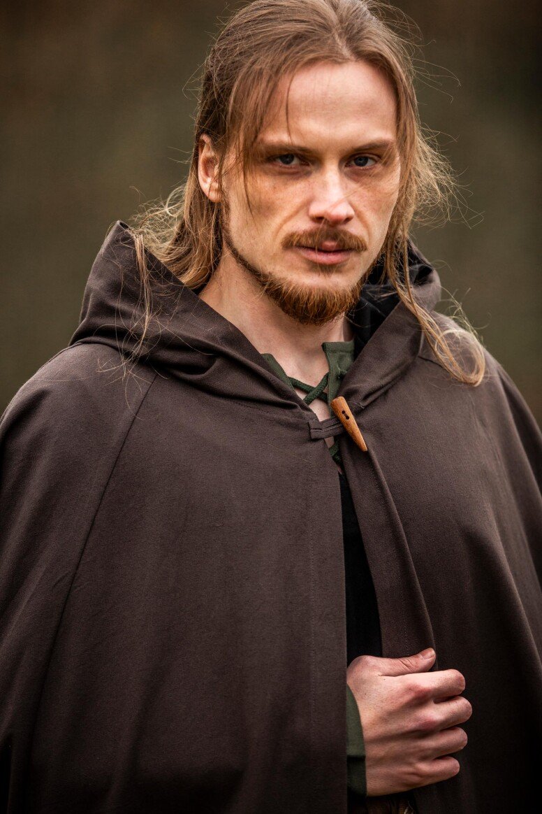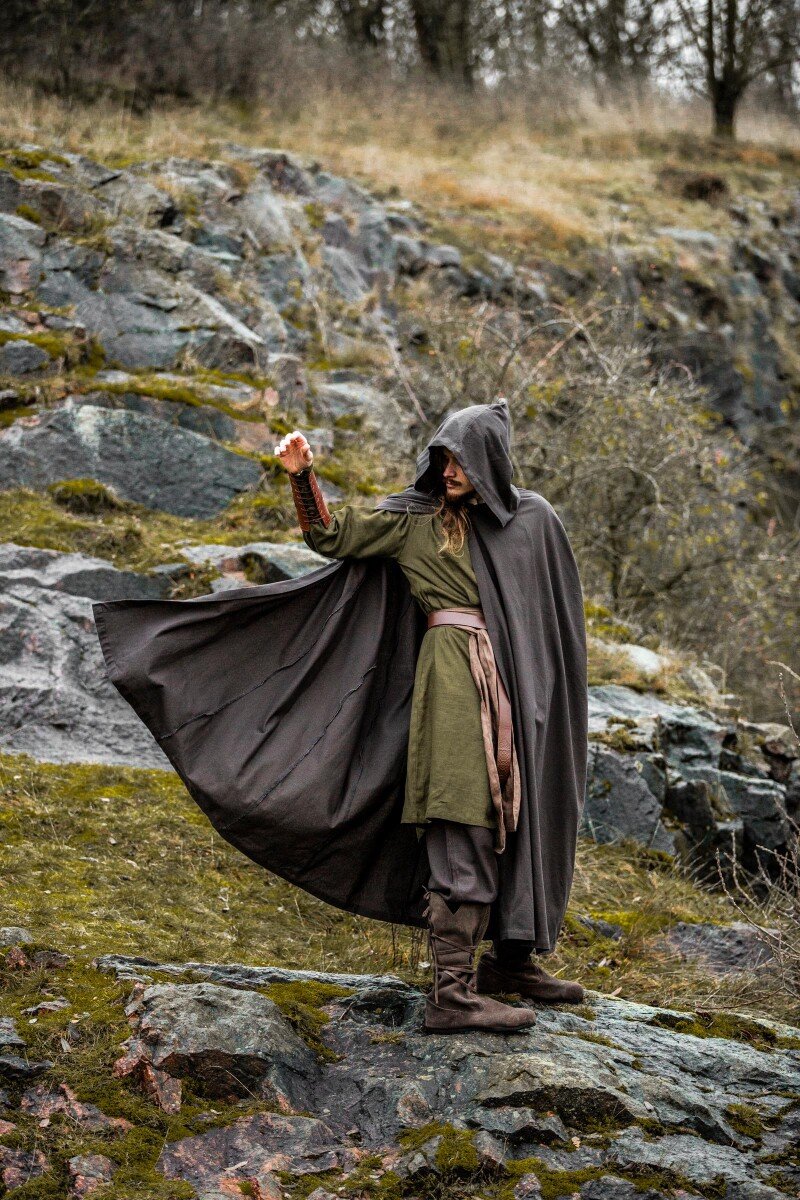 Nuestra capa Johannes está inspirada en las prendas emblemáticas que marcaron el día a día durante la era medieval. Estas piezas eran esenciales para enfrentar los elementos, reflejando la forma clásica del periodo. El detalle del botón decorativo evoca la artesanía de antaño, brindándote una conexión directa con las tradiciones medievales.