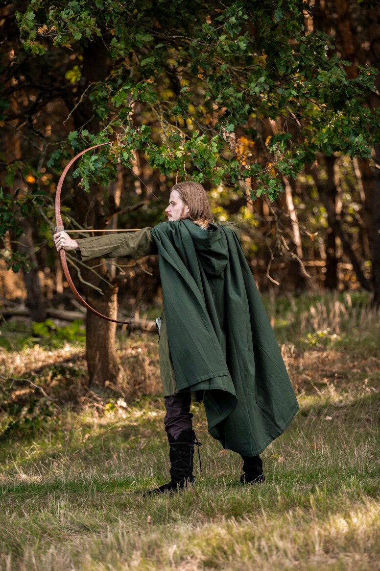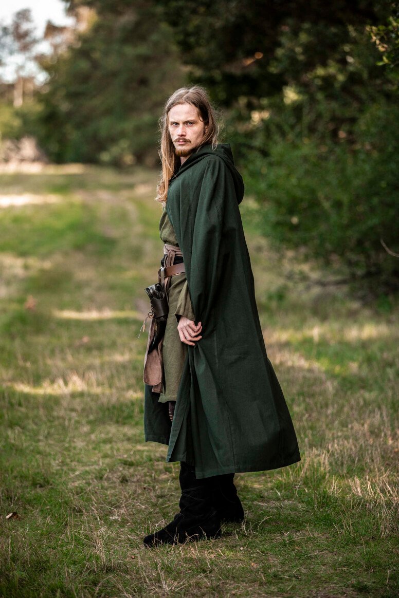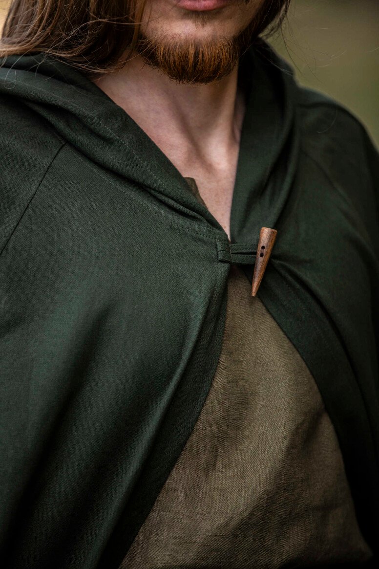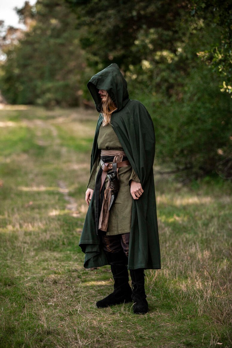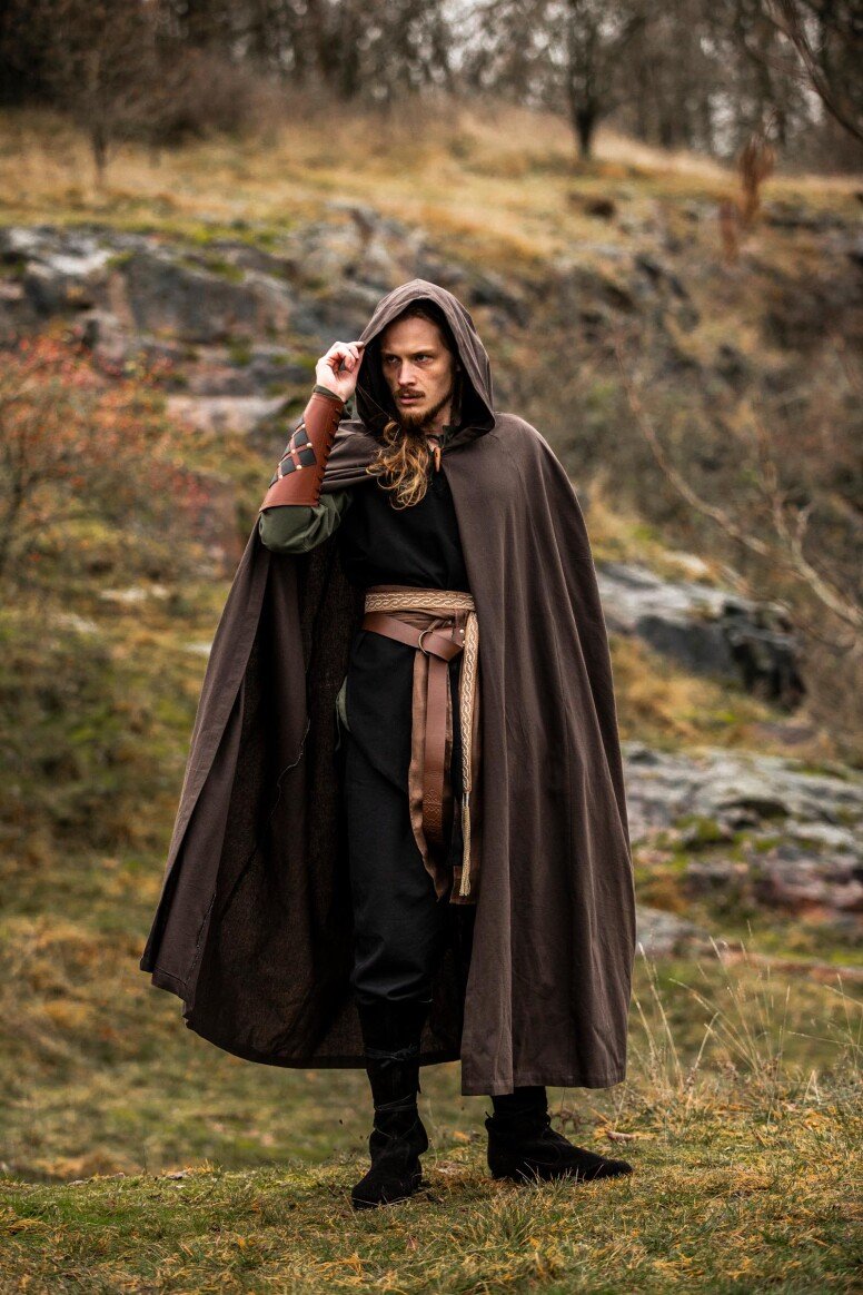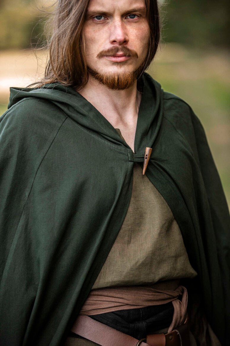 Nuestra capa Johannes está inspirada en las prendas emblemáticas que marcaron el día a día durante la era medieval. Estas piezas eran esenciales para enfrentar los elementos, reflejando la forma clásica del periodo. El detalle del botón decorativo evoca la artesanía de antaño, brindándote una conexión directa con las tradiciones medievales.