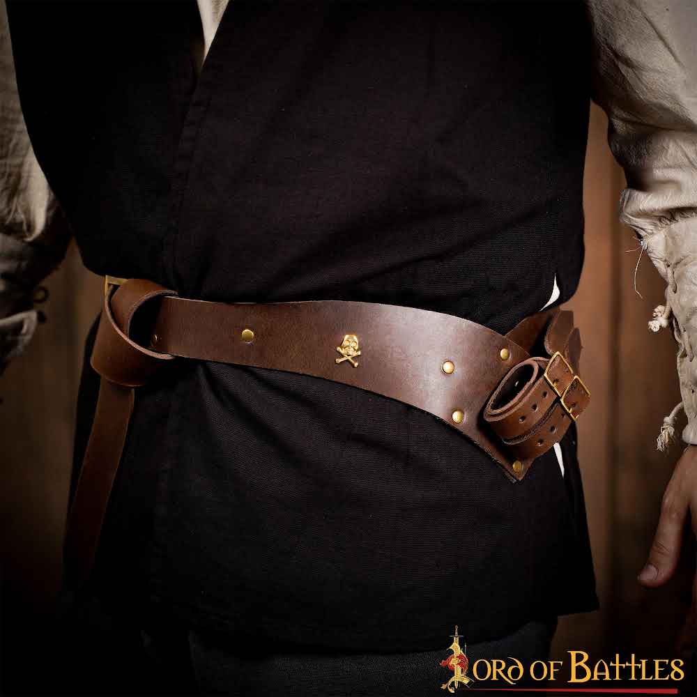Ideal para eventos de recreación histórica, LARP, ferias medievales o espectáculos teatrales, este cinturón mantiene tu arma segura al mismo tiempo que realza tu presencia escénica. El simple gesto de ceñírtelo antes de entrar en la taberna o en la cubierta de un navío añade una capa de inmersión que transforma tu interpretación.