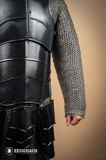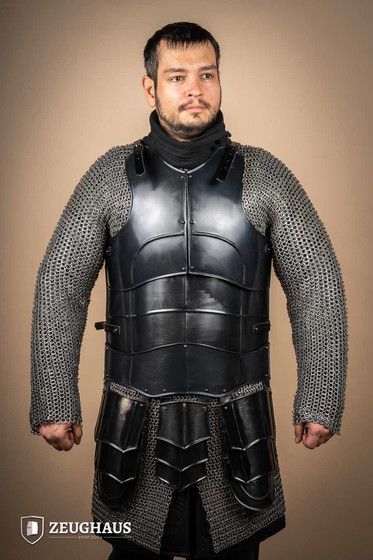 DescripciónHISTORIAEn el combate, los golpes al torso causaban el daño más grave. El tórax, el abdomen, la espalda y la pelvis son el hogar de la mayoría de órganos vitales, lo que puede causar dolor a través de golpes o cortes e impactando en el lugar adecuado con un solo golpe, puede dejar al oponente incapacitado o incluso matarlo. No es raro que su protección siempre haya recibido la máxima atención, junto con la cabeza, en el desarrollo de las armaduras.Colocada sobre la ropa, incluso las primeras armaduras tempranas perseguían el objetivo de ejercer como una tercera piel para proteger la parte superior del cuerpo de estocadas y cortes, absorber la energía de los golpes contundentes y mitigarlos mediante la distribución de la fuerza del impacto.A lo largo de la Edad Media, la armadura textil era el método más común para proteger la parte superior del cuerpo. Asequible hasta cierto punto, incluso para combatientes y soldados de leva, el gambesón sirvió a muchos guerreros como una armadura independiente.Aquellos que podían permitírselo usaban una cota de mallas a principios de la Edad Media, que cubría el torso hasta los muslos. También conocida desde tiempos anteriores, la armadura de escamas se encuentra ocasionalmente en uso en la Alta Edad Media.El avance de las armas durante la Alta Edad Media requirió el refuerzo de la armadura. Además de la cota de malla, los caballeros llevaban, al final de la Alta Edad Media, una brigantina: una camisa de armar de tela o cuero, cuyo interior estaba discretamente cubierto con escamas o remaches de metal.Con el auge de la armadura de placas a finales de la Edad Media, finalmente surge la coraza completa, una armadura de placas individuales para el pecho y la espalda. Esta estuvo en uso hasta que nacieron las armas de fuego, ante las cuales ofrecían poca protección.Los productos de metal requieren de unos cuidados para su correcto mantenimiento. La norma más importante es evitar todo lo posible la humedad (agua, sudor, salinidad, etc.). Almacenarla en un lugar seco y revisarlo cada varias semanas para detectar signos de oxidación. Si encuentra alguno, retíralo frotando el lugar afectado con un estropajo impregnado con aceite antioxidante.Si la pieza se moja, es importante que la seque completamente tan pronto como sea posible.Después de manipular, usar o tras de varios meses de almacenamiento o exhibición, todo el metal debe limpiarse con un paño limpio. Recomendamos lubricar ligeramente la superficie limpia conSpray Ballistol(aceite lubricante y antioxidante).Siguiendo estos consejos, cada vez que asistas a un Rol en Vivo (LARP) tu armadura lucirá limpia y resplandeciente.
