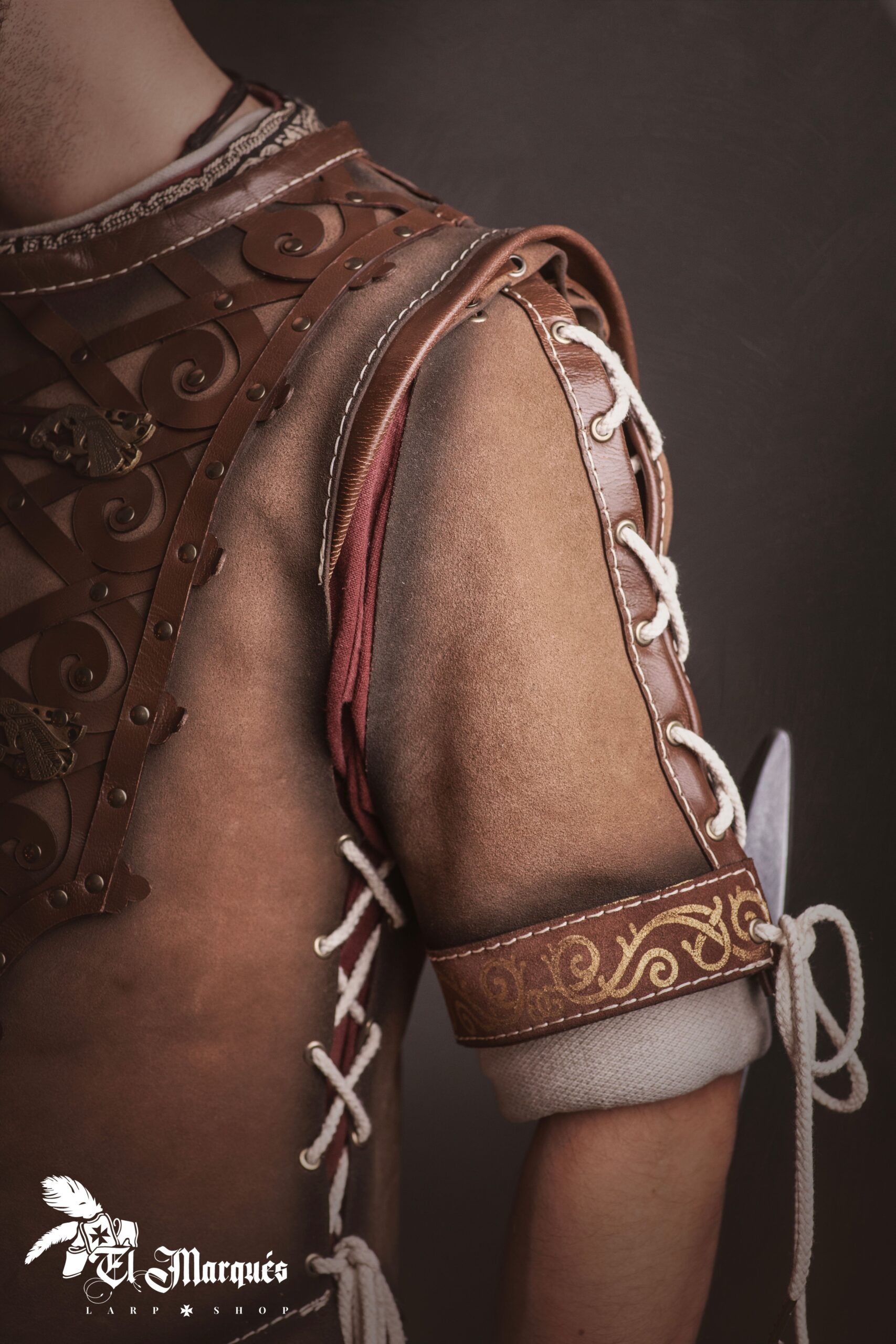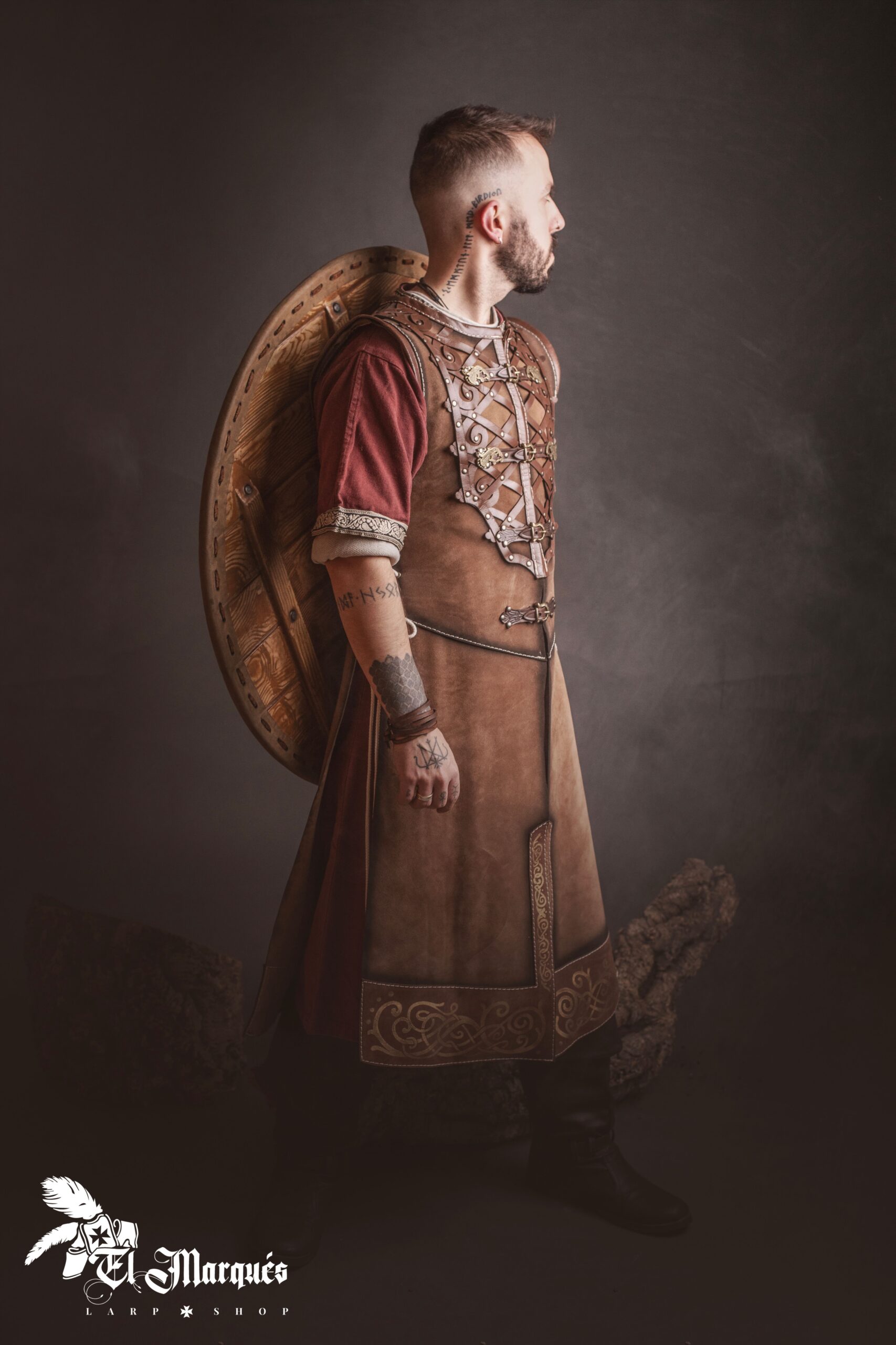 Imagina entrar al thing del clan, vigilar la empalizada o marchar hacia el combate con esta cuera ajustada a tu figura. Cada detalle refuerza la narrativa de tu personaje.