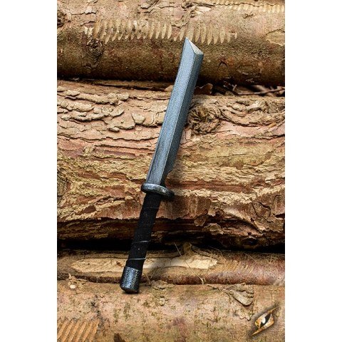 Este tanto, parte de la línea Ancestral de Epic Armoury, recrea con fidelidad un diseño histórico japonés. La hoja, de 26 cm recta y afilada, transmite precisión en cada estocada. La pequeña guarda ovalada protege la transición al mango de 10 cm, envuelto en cuero partido que aporta agarre y autenticidad. Está construido con espuma de célula cerrada sobre un núcleo de fibra de vidrio, recubierto en látex robusto y con refuerzo de kevlar en la punta para garantizar resistencia y seguridad