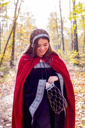 Sumérgete en el encanto del pasado con nuestro bolso de terciopelo «Relindis», diseñado para los amantes de la era medieval que buscan un toque especial en su guardarropa. Este bolso, con una altura de 30 cm y un ancho de 20 cm, combina funcionalidad y estilo, perfecto para acompañarte en tus aventuras épicas. Su cierre con cordón decorativo, adornado con intrincados patrones y el diseño enrejado, crea una atmósfera mística que llama la atención en cada encuentro.