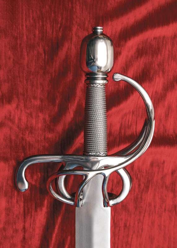 Inspirada en varios originales conservados en colecciones públicas y privadas —incluida la Wallace Collection y el Museo Nacional de Baviera—, esta réplica reproduce con gran fidelidad una auténtica espada de servicio usada por la guardia de la ciudad de Múnich hacia el año 1600.