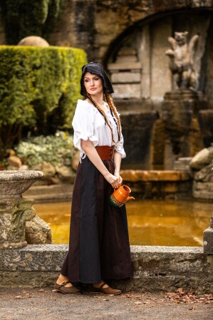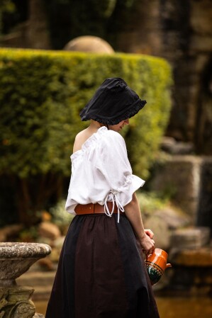 No esperes más para añadir este increíble accesorio a tu colección. ¡Hazte con nuestra gorra de cintura con volante Silke ahora mismo! Y para complementar aún más tu atuendo, explora nuestras blusas medievales o descubre nuestros vestidos medievales. Cada pieza está diseñada para llevarte directamente al corazón del mundo medieval.