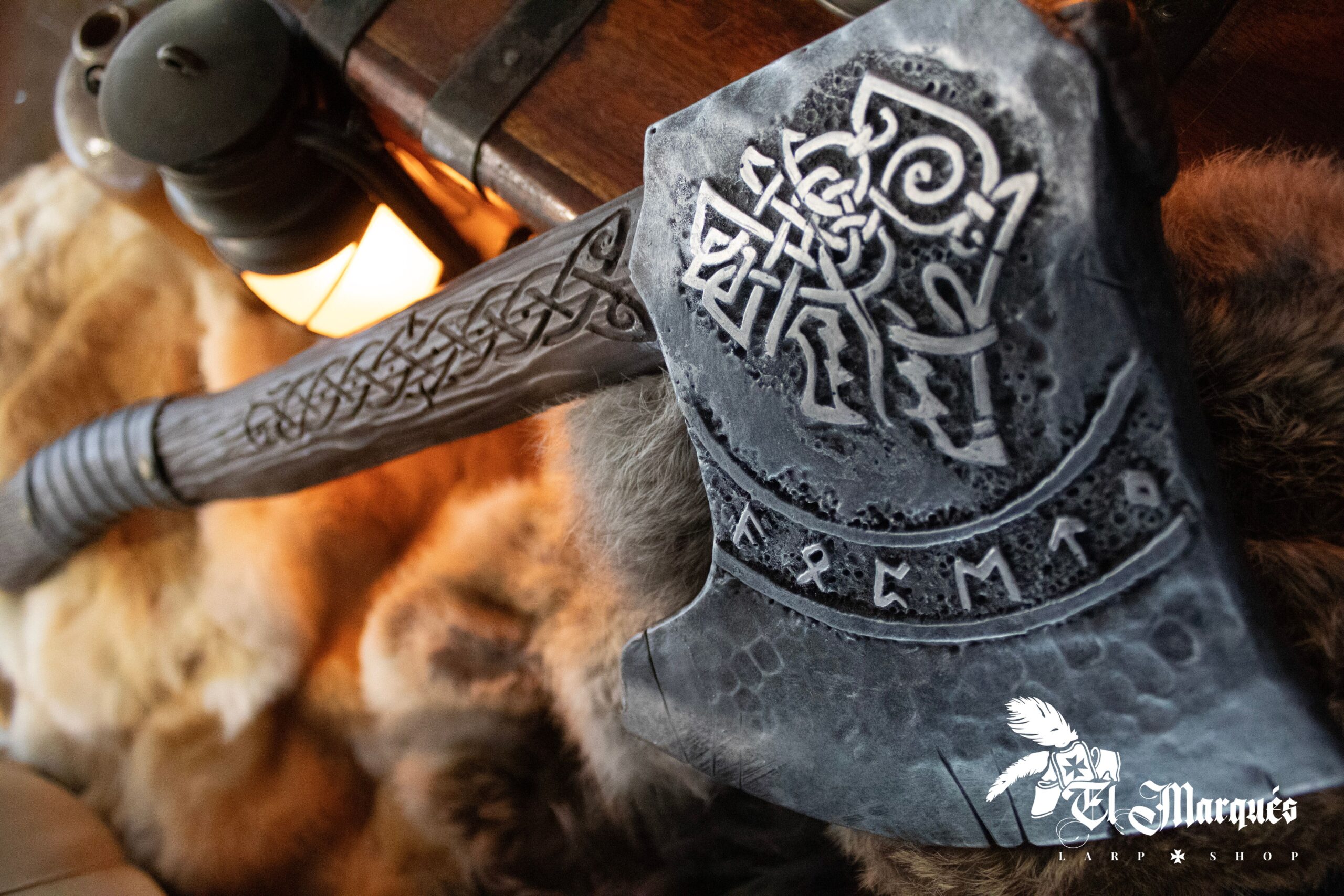 Cuando la levantas, sientes la ligereza y versatilidad propias de un arma de espuma, perfecta para encadenar movimientos rápidos sin perder el dramatismo visual. En recreaciones y eventos, transmite autoridad sin comprometer la seguridad del entorno. Es un accesorio que acompaña bien a bárbaros del Norte, exploradores, berserkir o guardianes de clanes, y añade un toque emocional que fortalece la narrativa de cualquier interpretación.