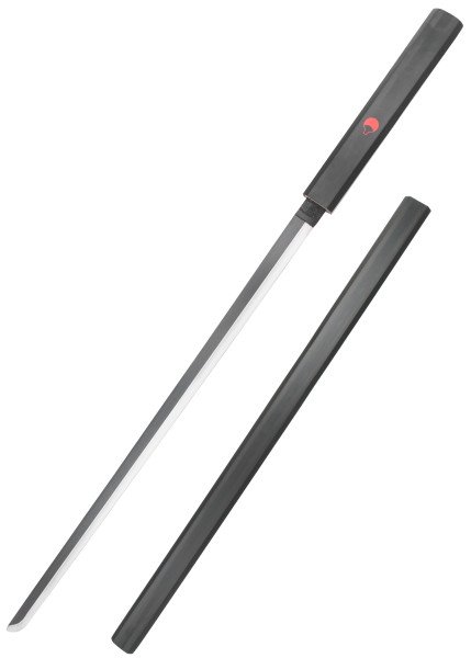 La saya y la tsuka están lacadas en negro y decoradas con el emblema del clan Uchiha, perfecta para fans de Naruto Shippuden, coleccionistas de katanas y amantes del merchandising premium de anime. Su hoja es roma (no afilada) y está fabricada en acero al carbono, ideal para exposición y cosplay responsable.