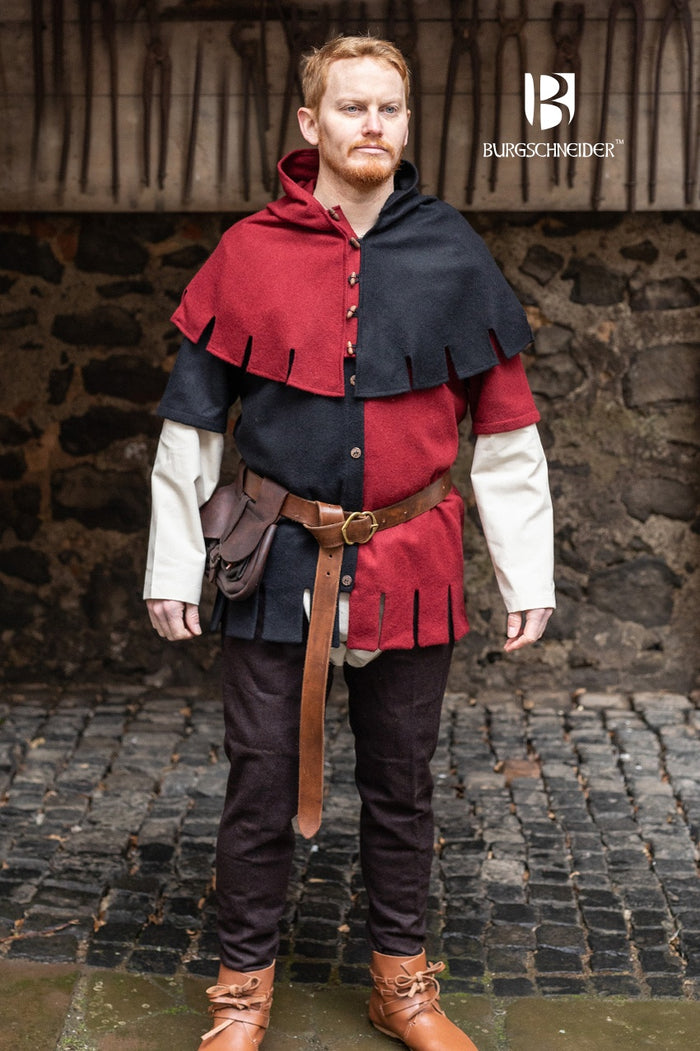 Descubre el El Gugel «Dangereuse» de nuestra línea Mi-Parti. Esta capucha medieval ajustada está inspirada en la ropa funcional de la Edad Media.