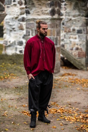Nuestros pantalones Vincent están inspirados por la rica tradición de la Baja Edad Media, una época llena de historias y leyendas valientes. Aunque no son una recreación histórica exacta, estos pantalones capturan el espíritu aventurero y libre del período. Perfectos para eventos temáticos o para aquellos que desean añadir un toque medieval a su guardarropa moderno.