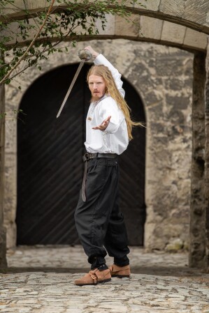 Nuestros pantalones Eckart son perfectos para cualquier jornada aventurera o evento temático medieval. Ya sea que participes en una feria renacentista o simplemente desees añadir un toque histórico a tu día a día, estos pantalones te proporcionarán el confort necesario gracias a su ajuste relajado.