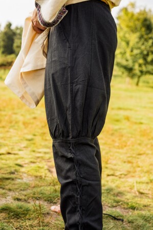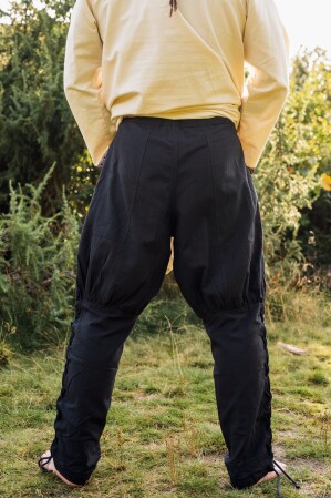 Aunque no podemos afirmar que sean auténticos, nuestros pantalones se inspiran en los diseños utilizados por los valientes vikingos. Conocidos por su capacidad de adaptación y resistencia, estos guerreros preferían prendas que les permitieran movilidad y protección. Los cordones cruzados no solo embellecen el diseño, sino que también evocan esa era de exploración y conquista, cuando cada prenda tenía un propósito práctico.