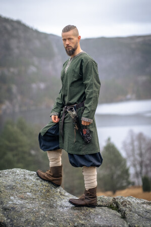 La túnica es una pieza icónica del vestuario vikingo, utilizada por hombres de todas las clases sociales durante sus aventuras por tierras lejanas. Aunque el auténtico diseño histórico varía, nuestra versión se inspira en estos elementos tradicionales, combinando confort moderno con un atractivo atemporal. Imagina liderar una incursión o comerciar en tierras extranjeras mientras llevas puesta esta prenda que refleja la esencia misma del espíritu vikingo.
