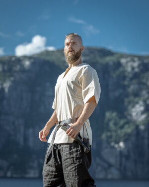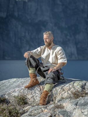 Haz tuya la aventura con nuestra túnica vikinga Olaf: una prenda esencial para todo entusiasta del estilo medieval. Para complementar este look auténtico e inspirado por épocas pasadas, te recomendamos explorar nuestros cinturones medievales & vikingos o combinarla con nuestros pantalones medievales para hombre. ¡Prepárate para conquistar tus propias epopeyas!
