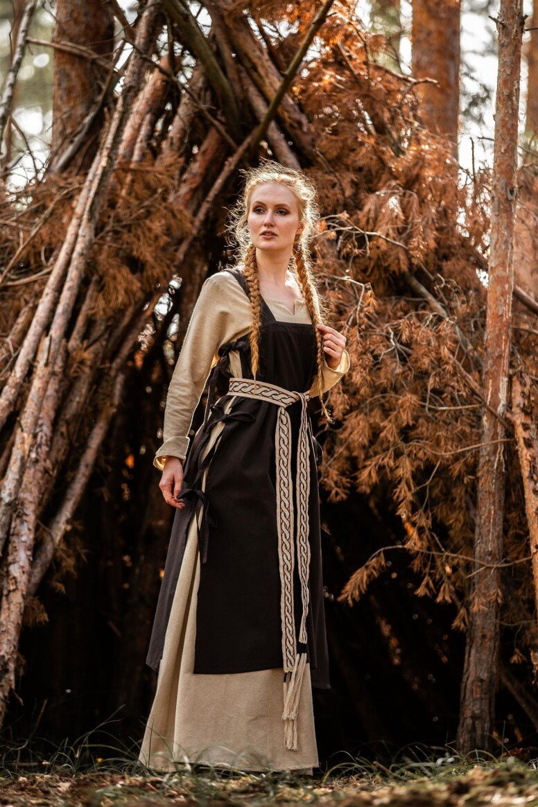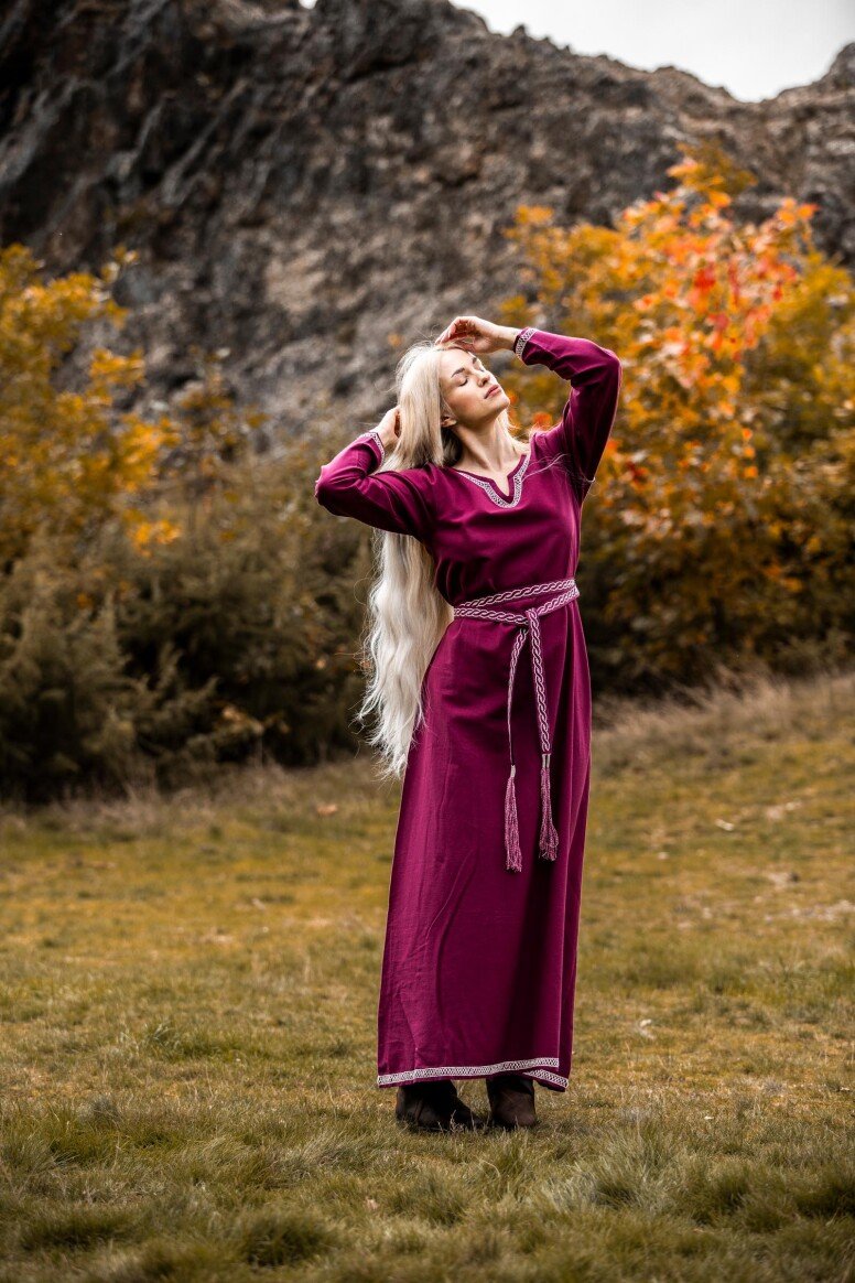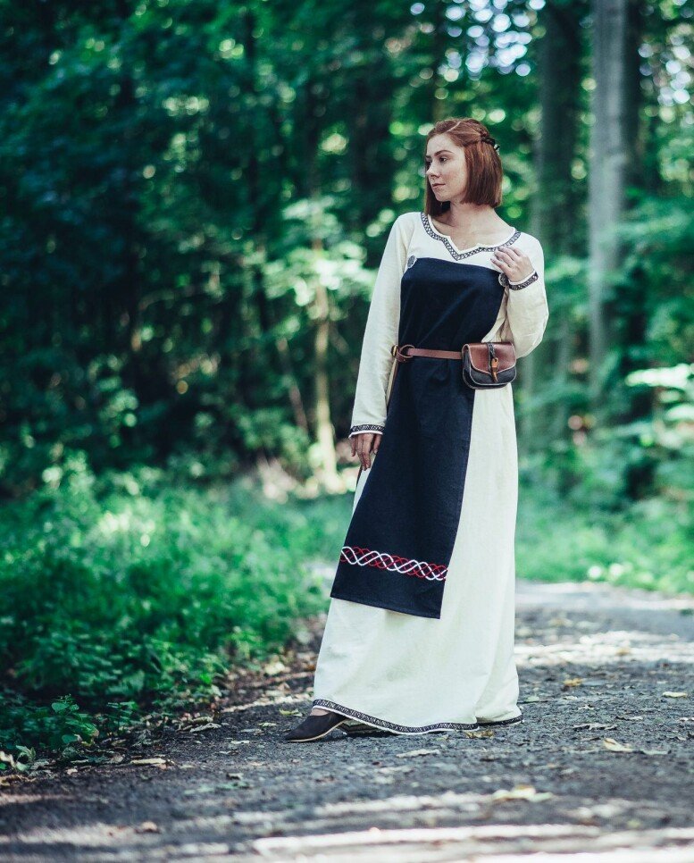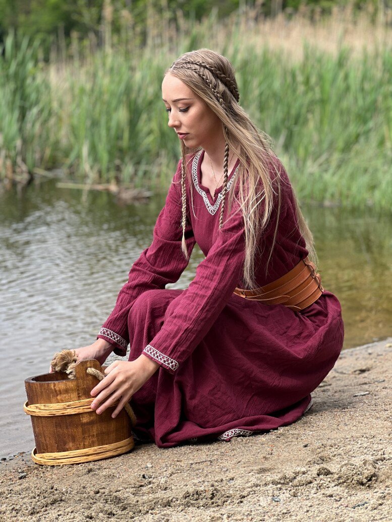 Sumérgete en la magia de las épocas pasadas con nuestro impresionante vestido de vikingo Brígida. Este vestido ha sido diseñado cuidadosamente para capturar la esencia de los legendarios navegantes nórdicos, ofreciendo un equilibrio perfecto entre estilo y confort. Con una silueta fluida y detalles meticulosamente bordados a mano en el pecho, las mangas largas y el dobladillo, este vestido es una verdadera obra maestra que te hará destacar en cualquier evento especial.