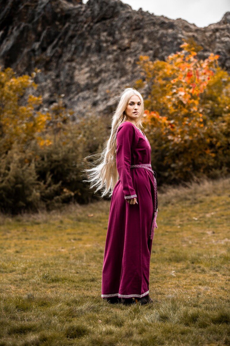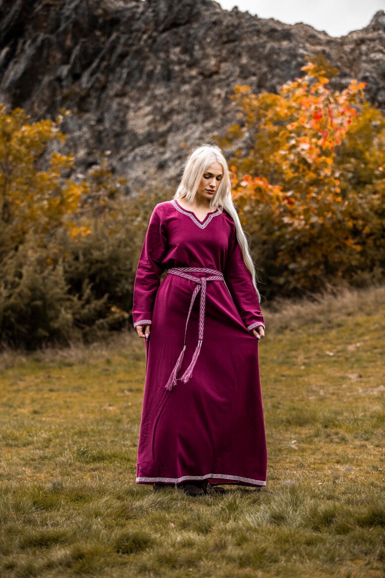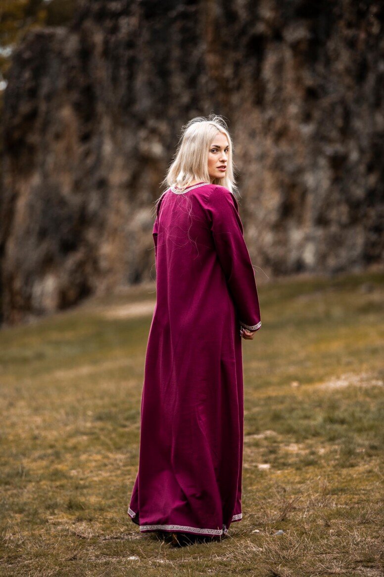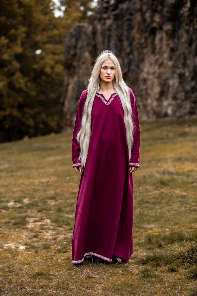Sumérgete en la magia de las épocas pasadas con nuestro impresionante vestido de vikingo Brígida. Este vestido ha sido diseñado cuidadosamente para capturar la esencia de los legendarios navegantes nórdicos, ofreciendo un equilibrio perfecto entre estilo y confort. Con una silueta fluida y detalles meticulosamente bordados a mano en el pecho, las mangas largas y el dobladillo, este vestido es una verdadera obra maestra que te hará destacar en cualquier evento especial.