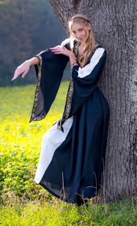 El vestido Ivette está inspirado en los diseños medievales, transportándote a una época donde la moda era sinónimo de arte y sofisticación. En la Edad Media, los vestidos eran mucho más que simples prendas: eran una declaración de estatus y estilo personal. Esta pieza captura esa esencia histórica a través de sus detalles intrincados y su silueta majestuosa.