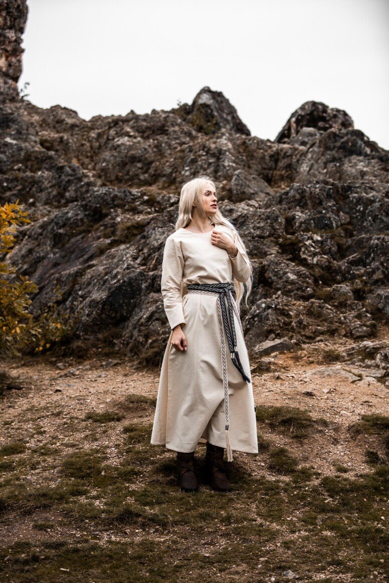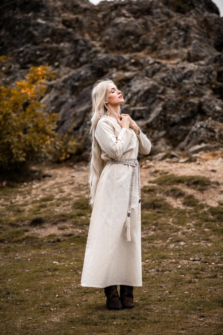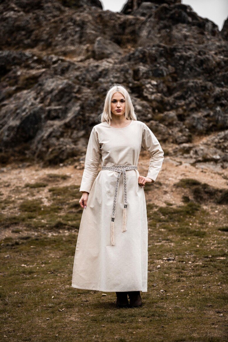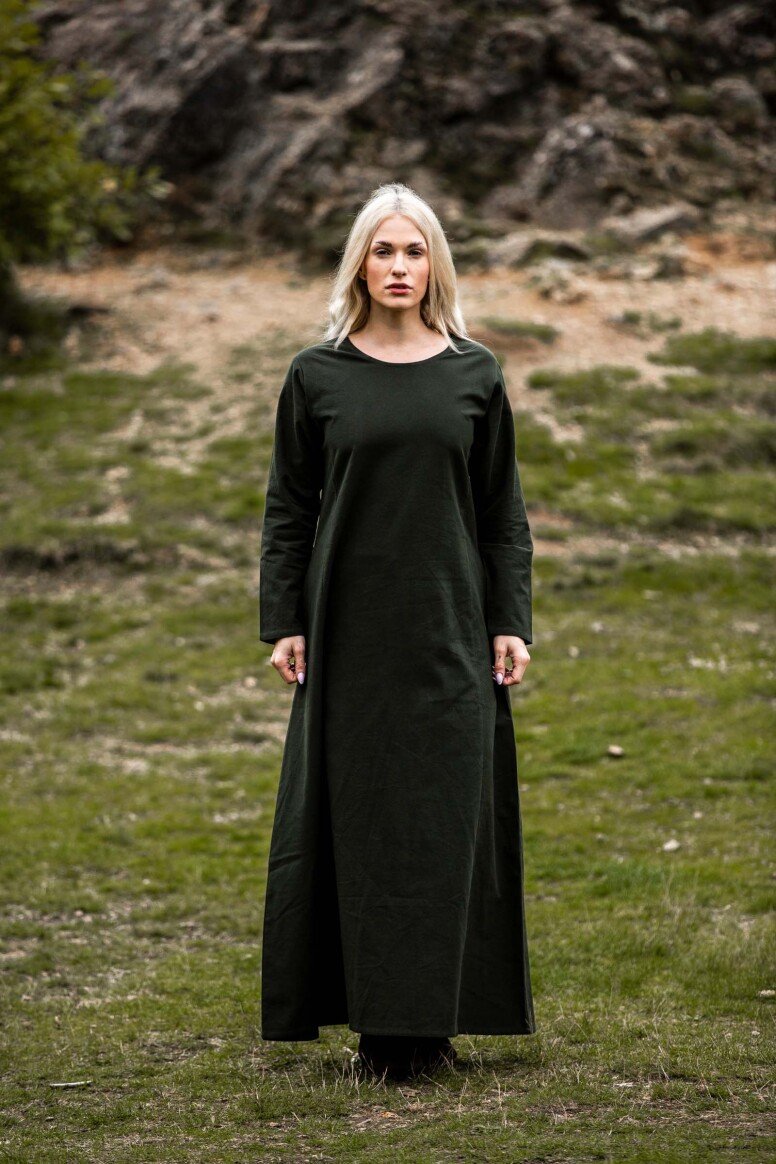 Nuestro vestido está inspirado por los diseños de la Alta Edad Media, una era llena de misterio y encanto. Aunque no podemos asegurar su exactitud histórica, este vestido refleja el espíritu de aquellos tiempos. Durante esta época, las prendas holgadas eran preferidas por su confort y facilidad de movimiento, permitiéndote sentirte como una auténtica dama medieval lista para cualquier aventura.
